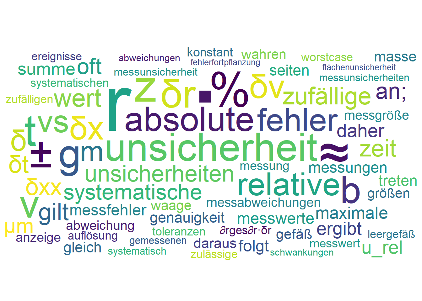 - Die relative Unsicherheit ist das Verhältnis dieser Unsicherheit zum gemessenen Wert, also: