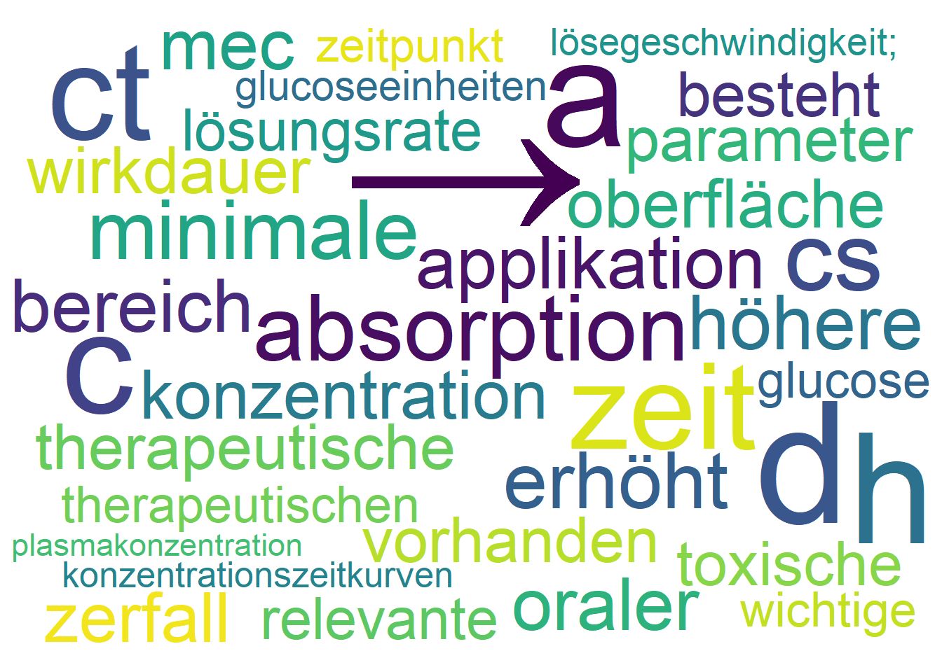 - Cmax: Maximale Plasmakonzentration – gibt an, wie hoch der größte Arzneistoffspiegel im Blut wird.