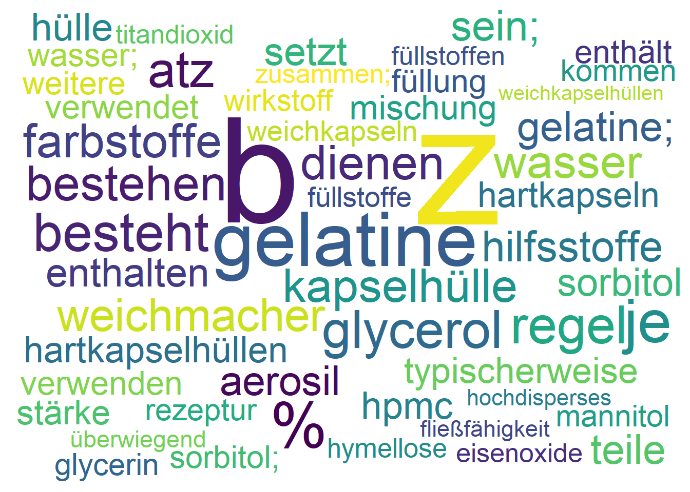 - Farbstoffe: Machen die Kapsel attraktiv oder helfen, verschiedene Präparate zu unterscheiden