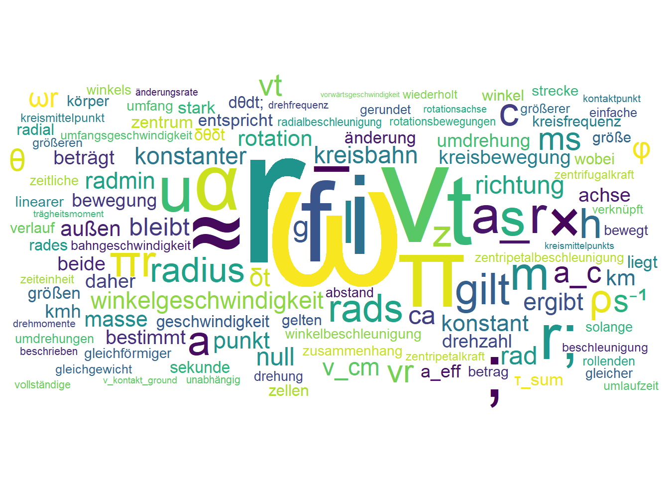 - “Welche Bahngeschwindigkeit \(v\) hat ein Punkt am äußeren Rand (\(r = 10\,\mathrm{cm}\)) bei \(\omega = 2\,\mathrm{rad/s}\)?”